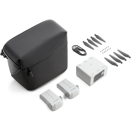 Комплект DJI Mini 3 Plus Fly More включает в себя две интеллектуальные летные батареи, концентратор для двусторонней зарядки, кабель для передачи данных, наплечную сумку, запасные винты и винты, обеспечивая всестороннюю поддержку при аэрофотосъемке по лучшей цене, чем при покупке отдельно.